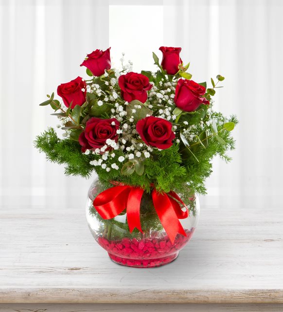 Paşabahçe Akvaryum Vazoda 7 Kırmızı Gül