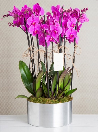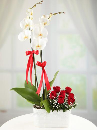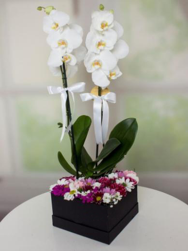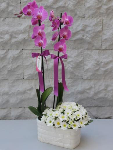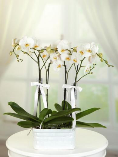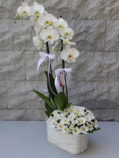 Beyaz Aranjmanlı Çift Dallı Orkide