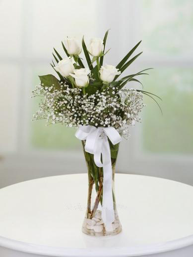 Paşabahçe Akvaryum Vazoda 7 Kırmızı Gül