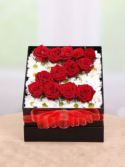 Bir adet solmayan gül ve kuru çiçekler ile hazırlanmıştır